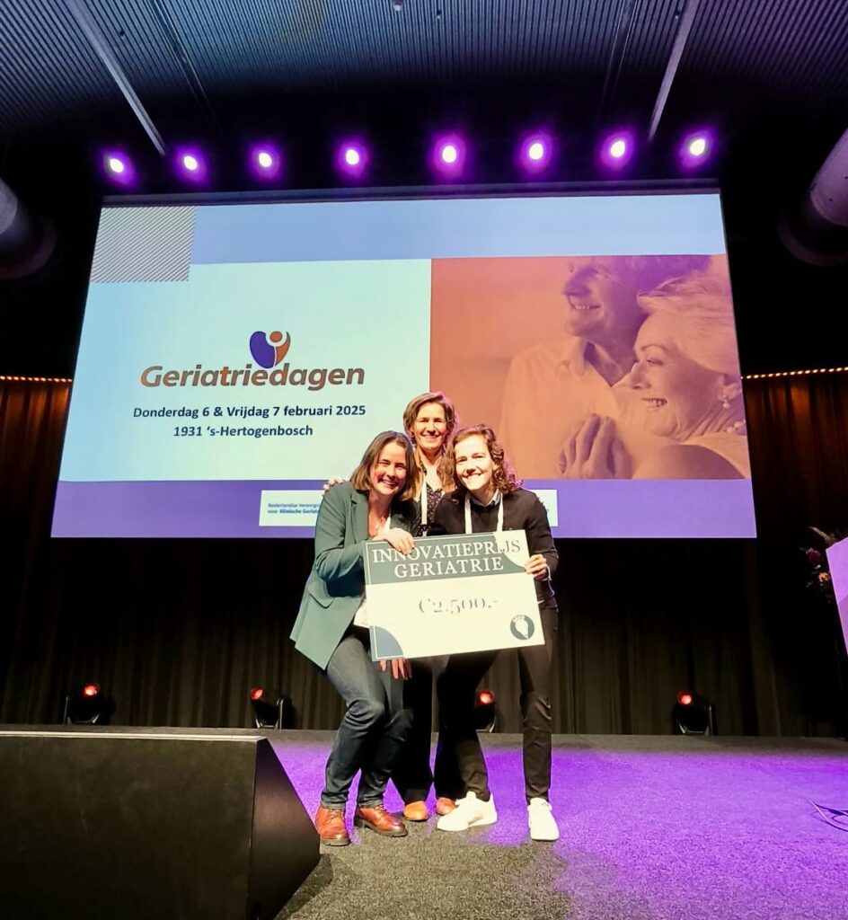 “Voor mij persoonlijk is het wel een fijne waardering voor ons werk”, zegt Wendy Leurs, arts in opleiding tot geriater. “Dat je hoort dat we misschien toch wel iets heel goeds en interessants aan het doen zijn.” Ook voor Marjolein Groeneveld voelt de prijs als bevestiging. Zeker omdat de samenwerking tussen artsen, verpleegkundigen en onderzoekers nadrukkelijk werd genoemd als kracht van het project. “Dat is ook gewoon echt zo”, vertelt Groeneveld. “Die samenwerking is superrelevant en superhandig.”