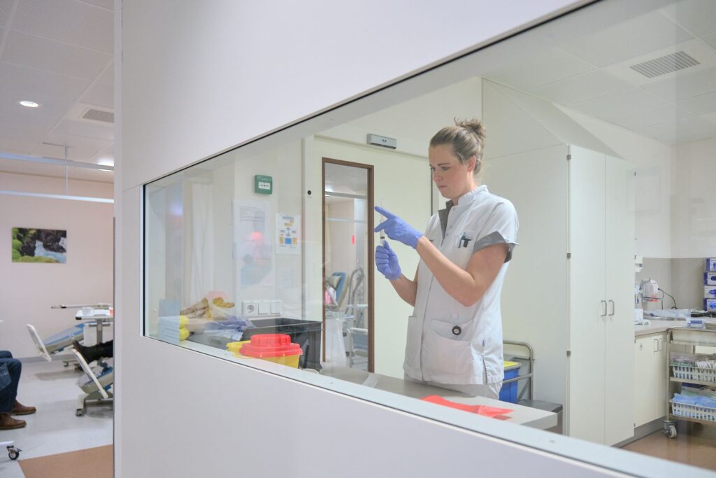 Op de dagbehandeling ziet Lenneke met haar collega’s dagelijks tussen de 40 en 50 patiënten. Sommige komen maar kort voor een injectie, anderen liggen er zes uur voor een behandeling. “Je bouwt echt een band op,” vertelt ze. “Veel patiënten komen wekelijks of tweewekelijks terug. We lachen samen, maar er zijn ook tranen. Mensen denken vaak dat het alleen maar zwaar is, maar er wordt hier ook echt veel gelachen.” Wat haar werk zo bijzonder maakt? “Je mag er zijn op een moment dat het leven van iemand op z’n kop staat. Je kunt iets betekenen, al is het maar door te luisteren of even te helpen om overzicht te krijgen.”